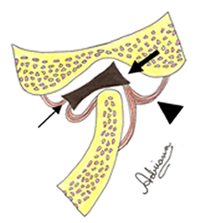 La mas importante estructura de la articulación temporomandibular es el disco o menisco, el cual se interpone entre el cóndilo mandibular y el hueso temporal e impide el daño articular.