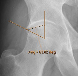 Fig 97. Pinzamiento tipo pincer. Signo del ángulo de borde lateral.