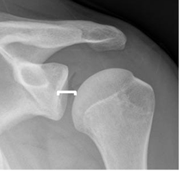 Rx AP. Aumento del espacio glenohumeral, por luxación posterior.