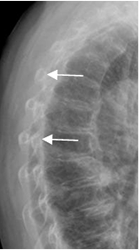 Rx lateral. Imágenes redondeadas que corresponden a los arcos posteriores., en la Rx lateral.