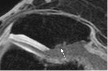 Las secuencias de RM potenciadas en T1, tienen buena sensibilidad para detectar lesiones condrales. (13). Ver mas adelante la artropatía degenerativa.