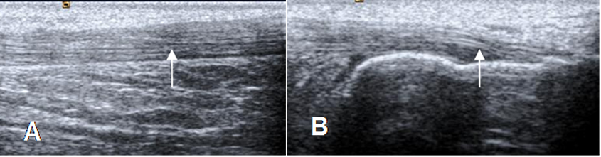 La ecografía se utiliza para la valoración de patología inflamatoria o traumática. Tiene la ventaja que es una modalidad barata, no invasiva, rápida, que permite el estudio comparativo y  dinámico. (4).