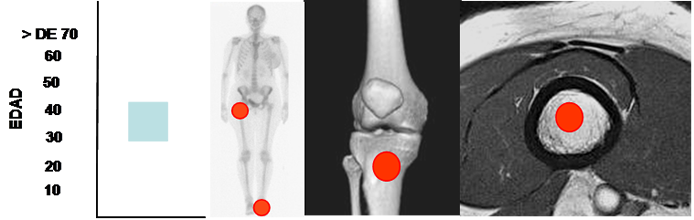 Es una lesión intramedular de predominio en las metáfisis de los huesos largos, con una alta frecuencia en el calcáneo y la región intertrocantérica femoral. (42).