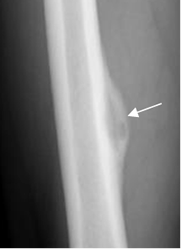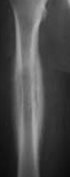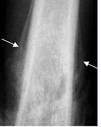 Rx AP. Reacción perióstica continua, en un osteoma osteoide.