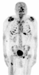 Gamagrafía ósea. Múltiples lesiones con captación del trazador, por enfermedad metastásica.